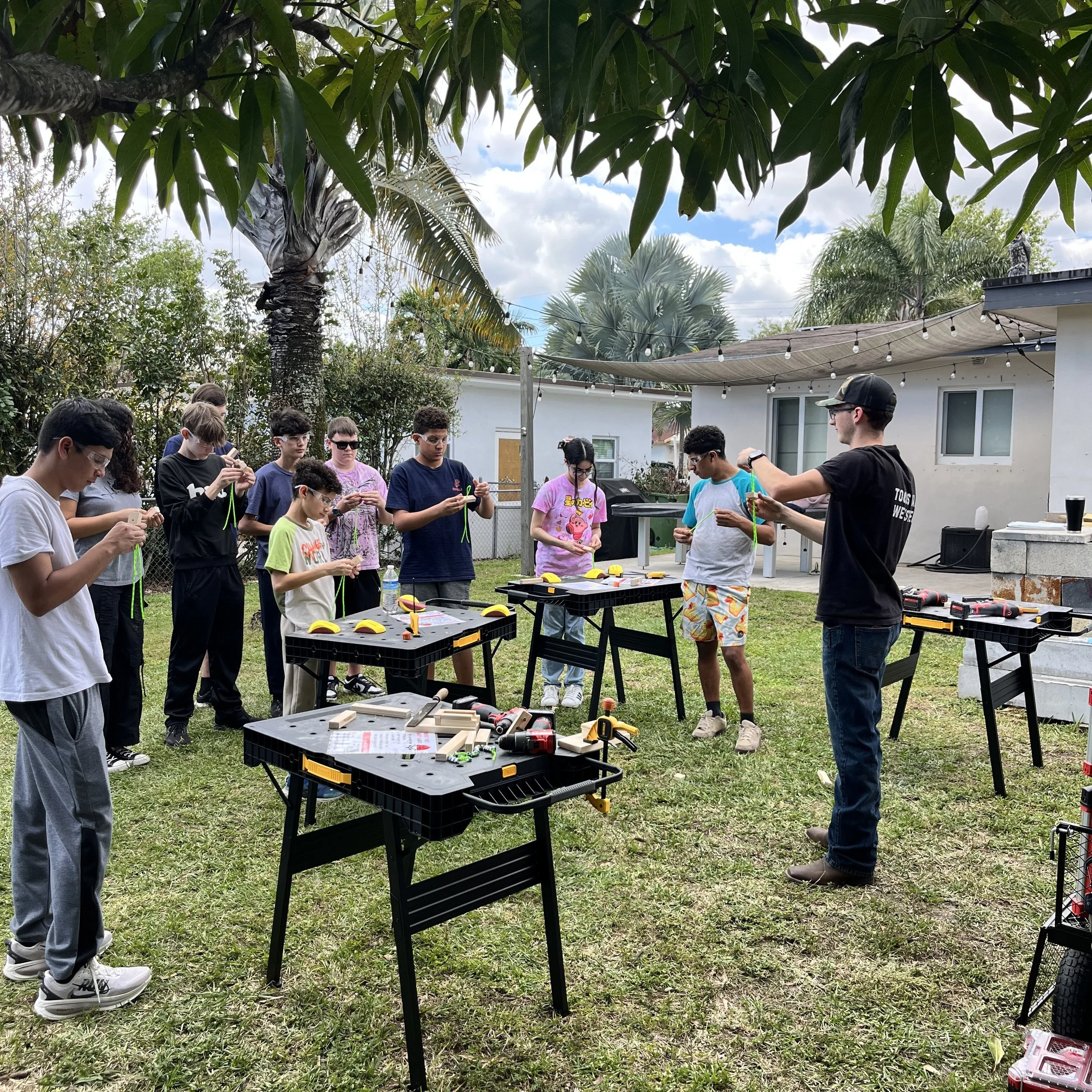 Students use real tools, follow structured plans, and complete meaningful projects in a safe, organized environment — without your organization needing shop space or equipment.